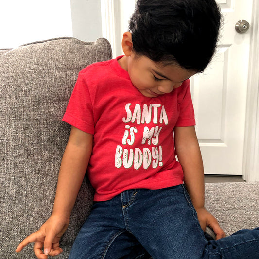 Santa is my Buddy - Holiday Toddler Short Sleeve Tee